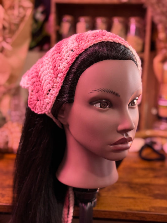The Magickal Rose’s Custom Order Crochet Headscarf & Bandana with Scalloped border and Picot Stitch
